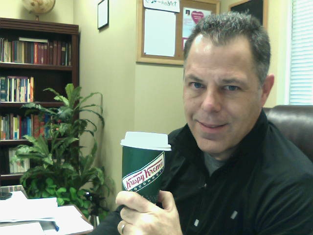 “Calories? We are having a salad for lunch, you can have one donut! Plus, someone may recognize you as the preacher at Central. Getting just the free cup of coffee might look bad on the church.”