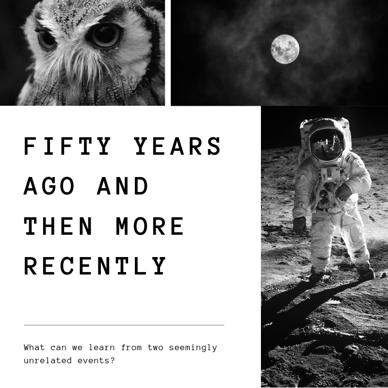 Two seemingly unrelated events separated by 50 years and 4 days. Two events that have something in common. Yes, I was alive for both events. I was too young to have knowledge of the first. That is not what they have in common. Armstrong references an eagle landing and the owl had landed on the road, but that is not similar enough to say that is what they have in common. What they have in common is FOCUS.