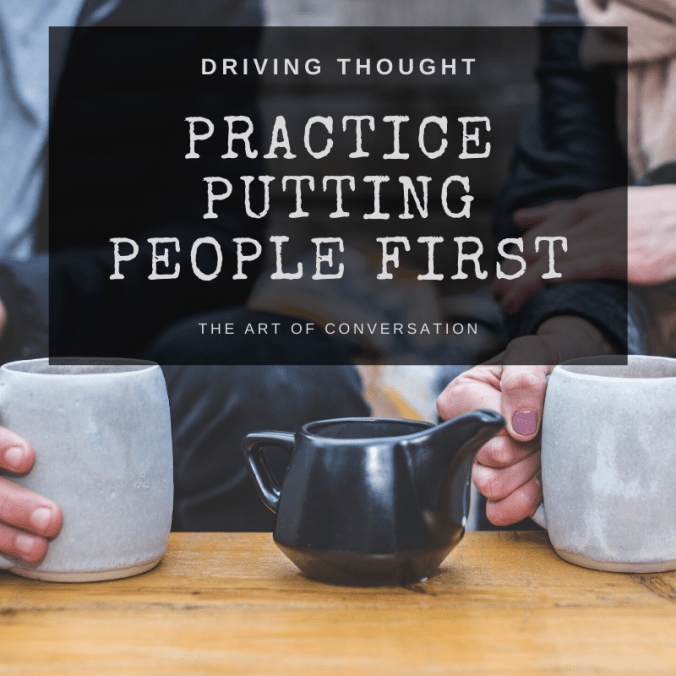 Let’s turn our time together into, well time together. Let’s set aside the small talk and seek to get to know each other better, to seek to really hear each other. Let’s learn to speak to the person and not just the situation or their appearance. Let’s practice putting people first.